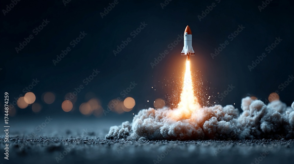 Dynamic rocket launch ignites the night sky with powerful fiery exhaust, symbolizing new beginnings and ambitious ventures into the unknown. #1744874259