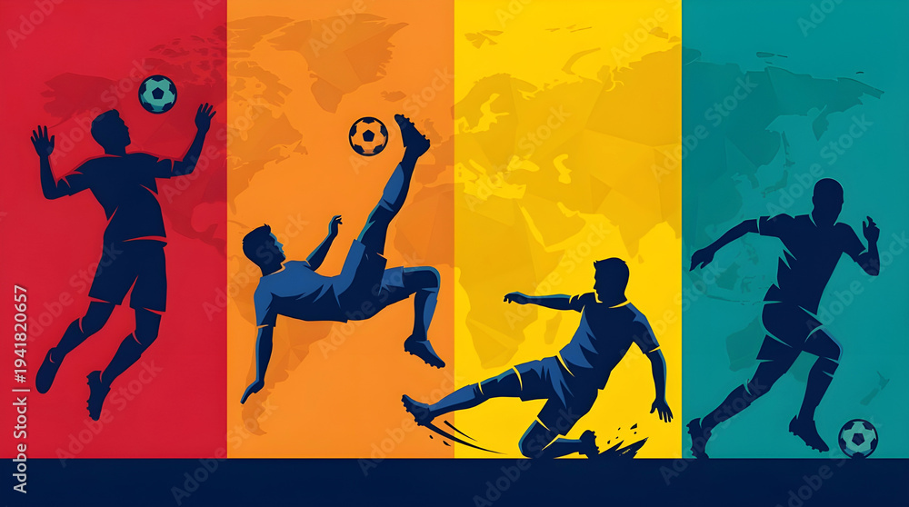 Dynamic Soccer Players in Action A Vibrant Flat Vector Illustration #1941820657