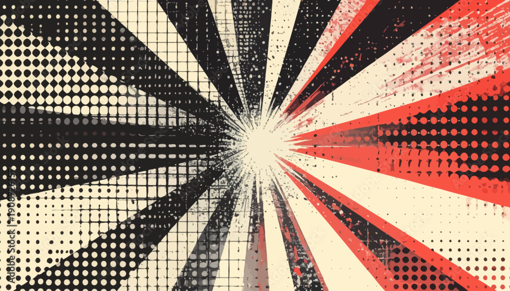 Dystopian Pop Art Design with Sunburst Pattern #1908726157