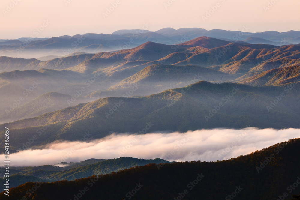 Early morning spring view of mountains and mist, from Clingmans Dome area, Great Smoky Mountains National Park, North Carolina #1241862657