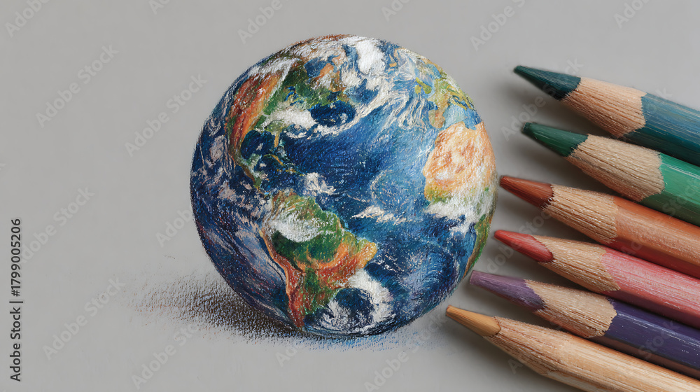 earth illustration hand drawn in color pencil style representing earth day learning creativity and sustainability concept #1799005206