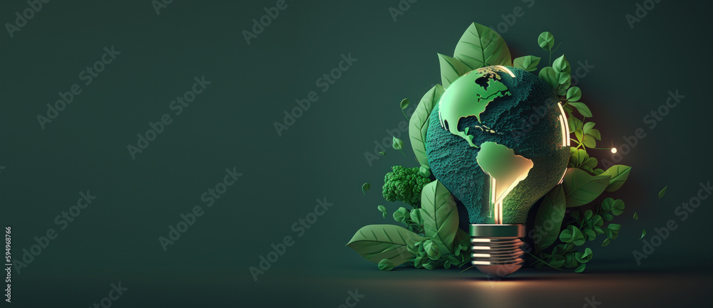 Eco friendly lightbulb banner with copy space, Sustainable and Renewable energy. Generative Ai #594968766