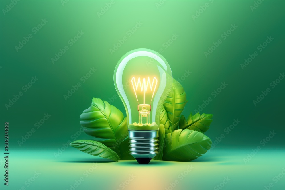 Eco Friendly Lightbulb with Greenery Plants, Sustainable and Renewable Energy Concept. Generative Ai #636214882