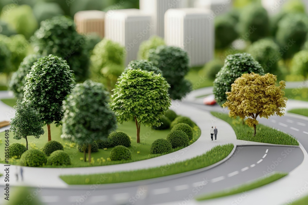 Eco-friendly urban design, pedestrian zones, car-free city, 3D illustration #1055166498
