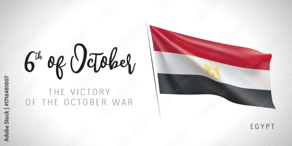 Egypt the victory of the October war day vector banner, greeting card. Egyptian wavy flag in 6th of October patriotic holiday horizontal design with realistic flag #1716481807