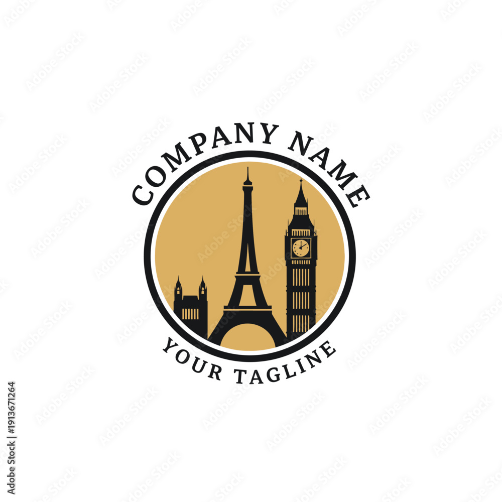 Eiffel Tower and Big Ben Logo Design Template. #1913671264