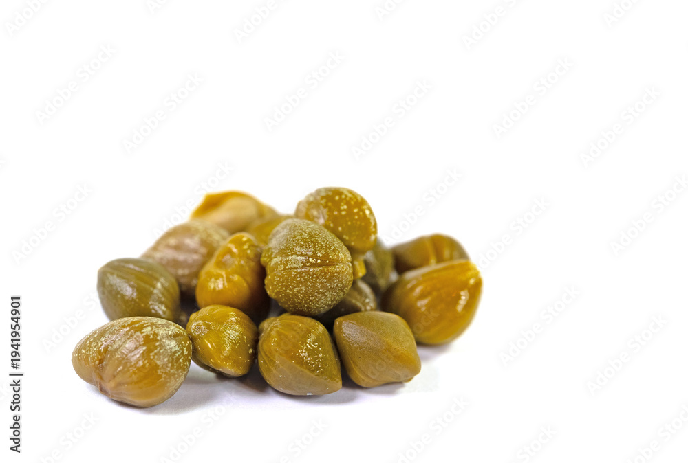 Eingelegte Kapern vor weißem Hintergrund #1941954901