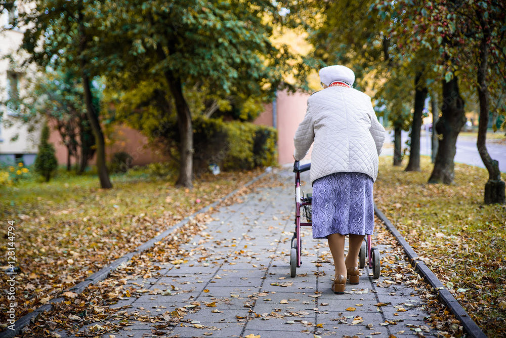 Elderly woman withe the walkier #123144794