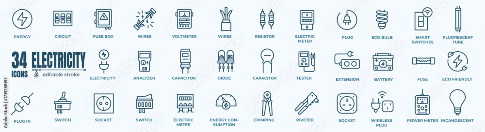 Electricity and Power Supply Energy Line Icons - Energy Concept, Vector Outline #1791268917