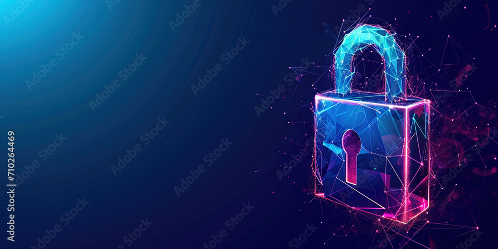 Electronic circuit futuristic neon padlock. Copy paste empty place for text. Cyber, personal data, privacy information security. Internet networking protection security system cybersecurity concept #710264469
