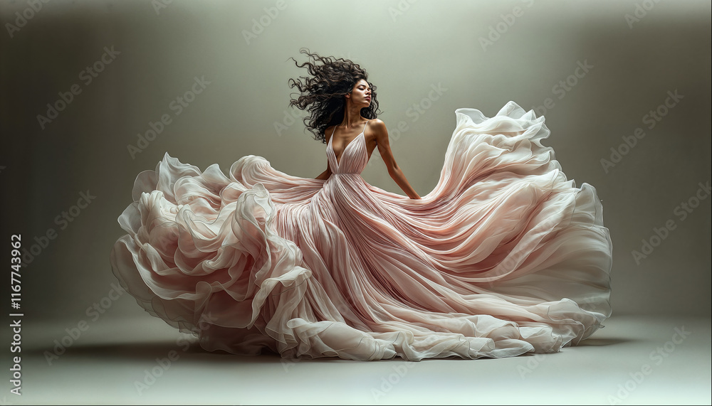 Elegant dancer twirls in flowing gown creating a stunning visual display of movement and grace #1167743962