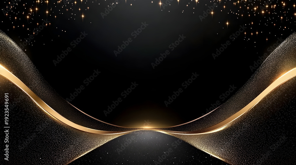 Elegant flyer design featuring black background with golden waves and sparkling stars, perfect for corporate gala night promotion. luxurious and sophisticated theme enhances event prestige #1923549691