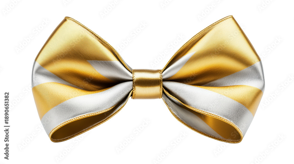 Elegant Golden and White Stripe Decorative Bow for Gift Wrapping on Transparent Background #1890651382