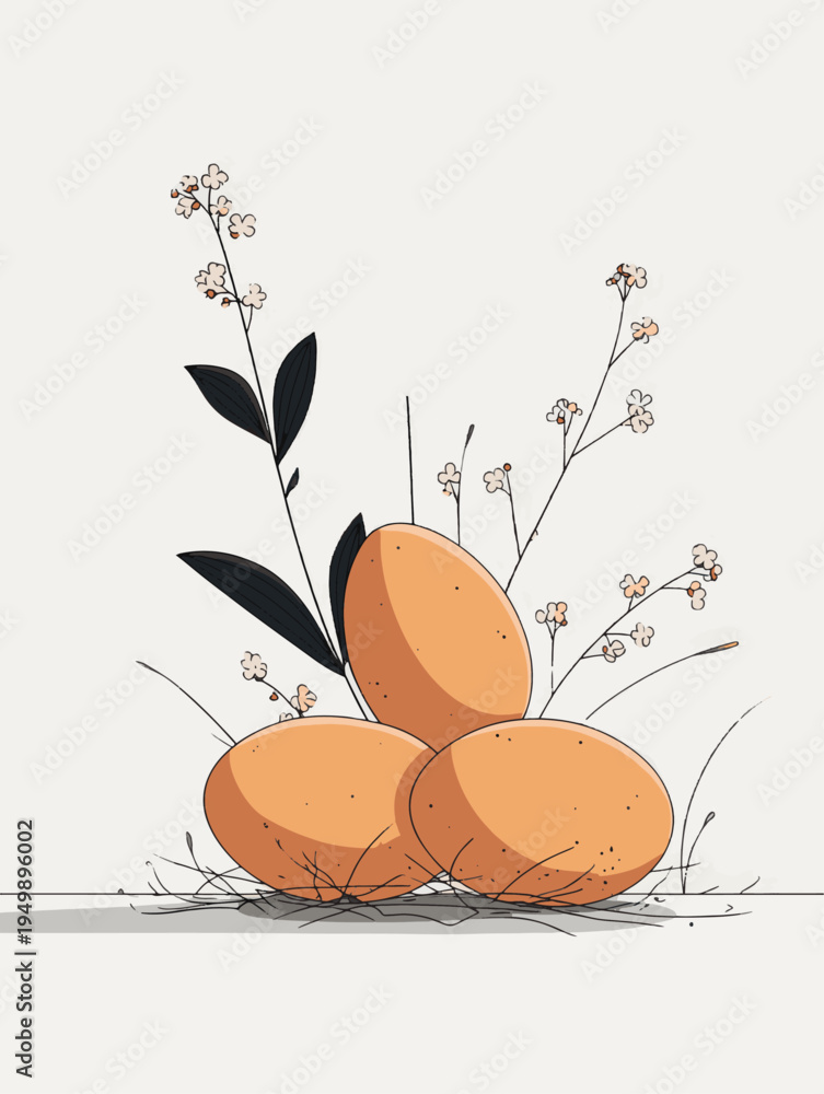 Elegant Golden Easter Eggs with Botanical Spring Flowers Minimalist Luxury Vector Background for Sophisticated Holiday Poster Design #1949896002