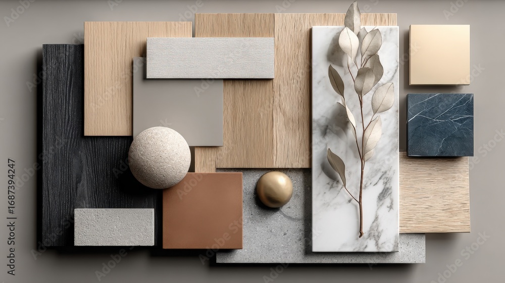 Elegant Interior Design Mood Board Featuring Natural Materials and Neutral Tones for Home Renovation and Decoration #1687394247