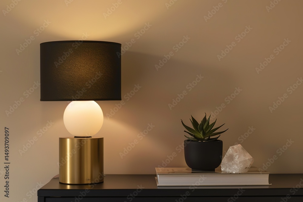 Elegant lamp with decorative plant and crystal on a nightstand for warm interior lighting #1493709097