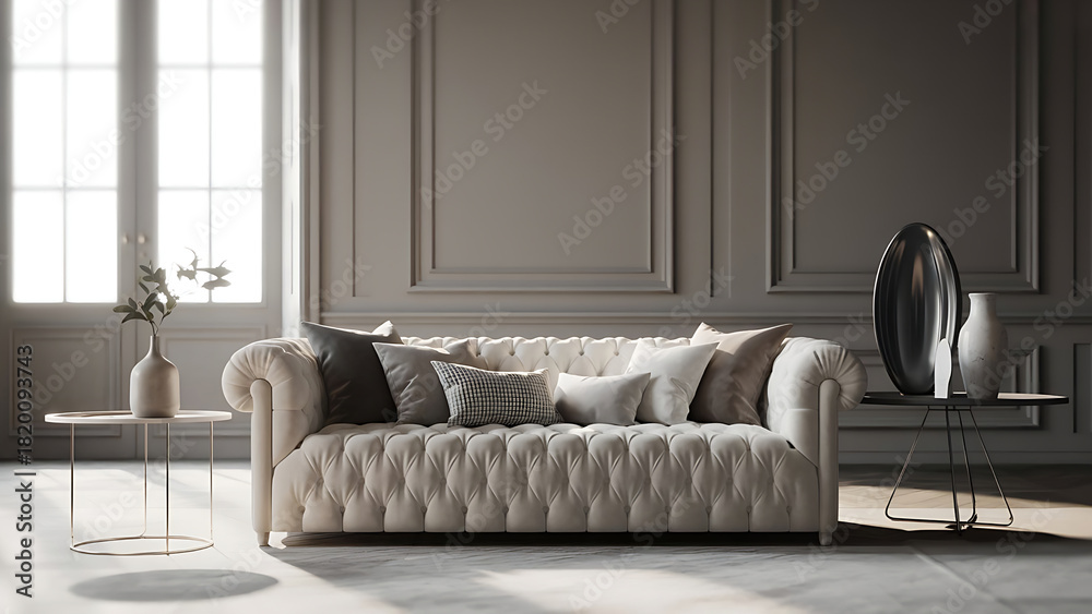 Elegant living room interior design with modern sofa and stylish decor #1820093743
