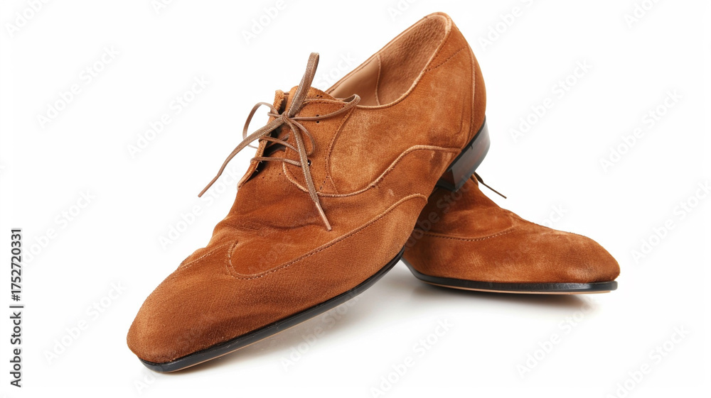 Elegant men's ballroom dance shoes in tan/brown suede with classic oxford styling and laces, isolated on a white background #1752720331