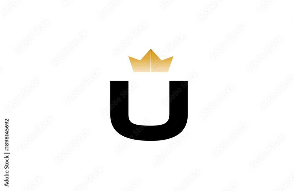 Elegant minimalist U logo featuring bold black letter with luxurious gold crown accent above, clean vector style for premium branding and identity #1896145692