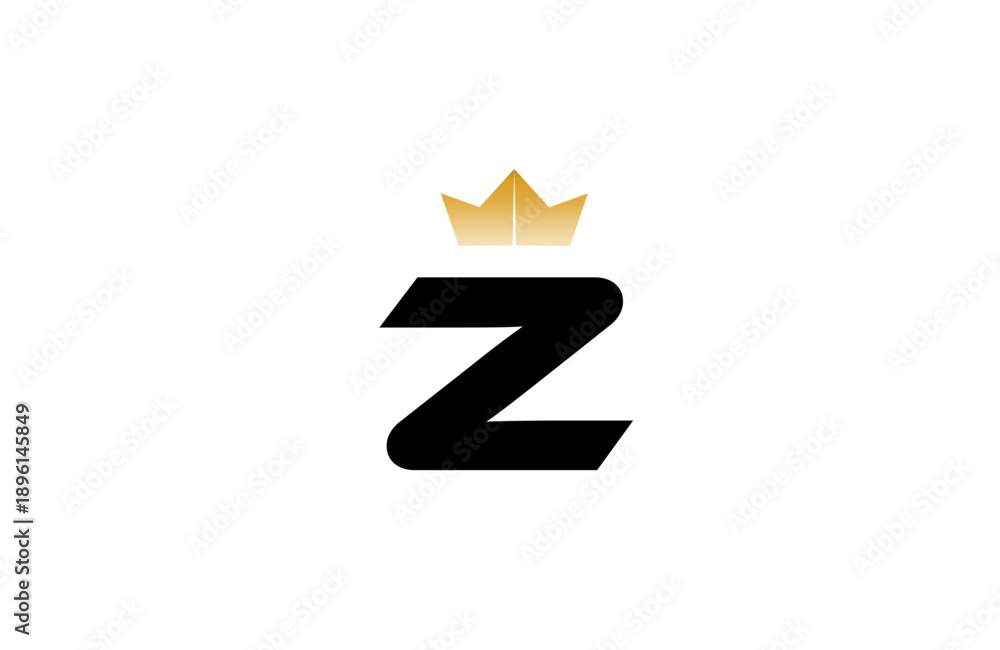 Elegant minimalist Z logo featuring bold black letter with luxurious gold crown accent above, clean vector style for premium branding and identity #1896145849