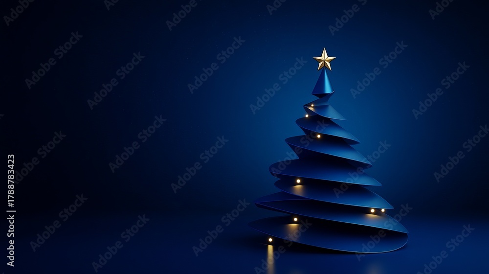 Elegant modern blue Christmas tree with golden star and warm lights, creating a festive and sophisticated holiday atmosphere for celebrations and design projects. #1788783423