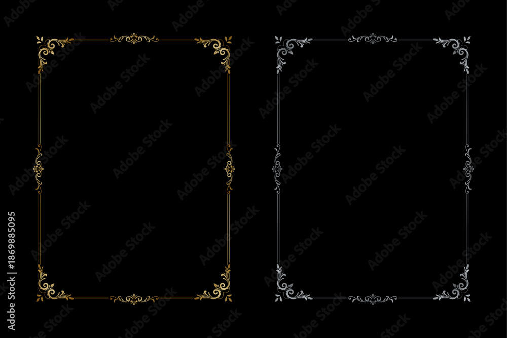 Elegant Ornamental Frames: Two intricately designed, ornamental frames grace a stark canvas, their delicate patterns hinting at a world of sophistication and refined taste. #1869885095