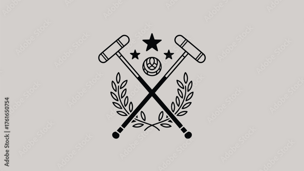 Elegant polo club crest with crossed mallets, ball, stars, and laurel wreath perfect for branding, sports teams, or exclusive event invitations #1761650754