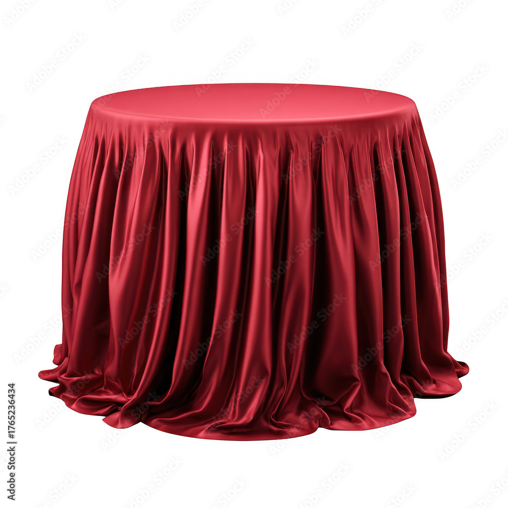 Elegant red satin tablecloth with luxurious drapes perfect for events and decorations isolated on transparent background #1765236434