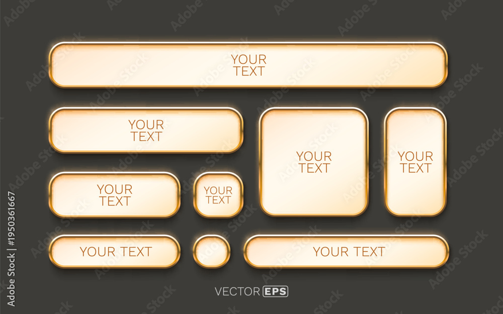 Elegant set of 3D golden text boxes and buttons with various shapes. #1950361667