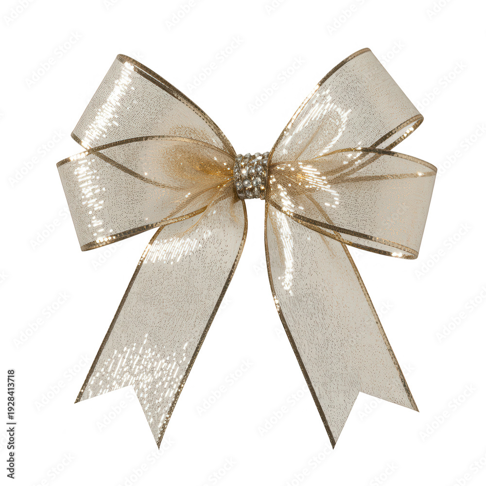 Elegant sheer gold ribbon bow with sparkle for gift wrapping and decoration isolated on a transparent background #1928413718