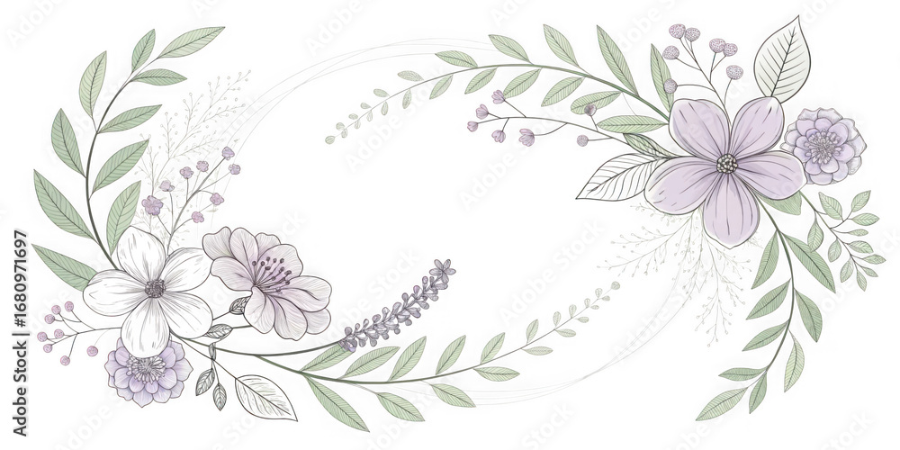 Elegant silver flower and leaf wreath design on a contrasting transparent background #1680971697