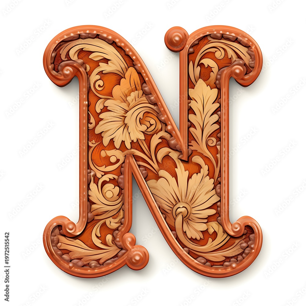 Elegant Vintage Latin Letter N Design #1972515542