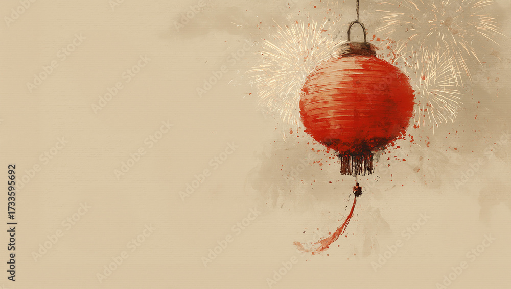 Elegant Watercolor Style Red Lantern. Chinese New Year Decoration with Festive Glow. #1733595692