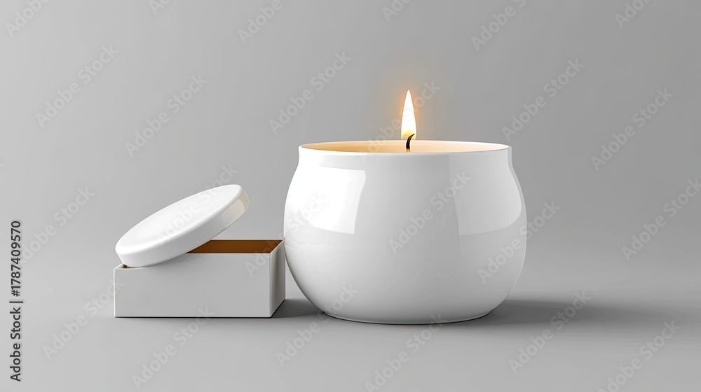Elegant white candle with open box creates a calming atmosphere perfect for home decor mockups and serene lifestyle visuals, showcasing minimalist beauty #1787409570