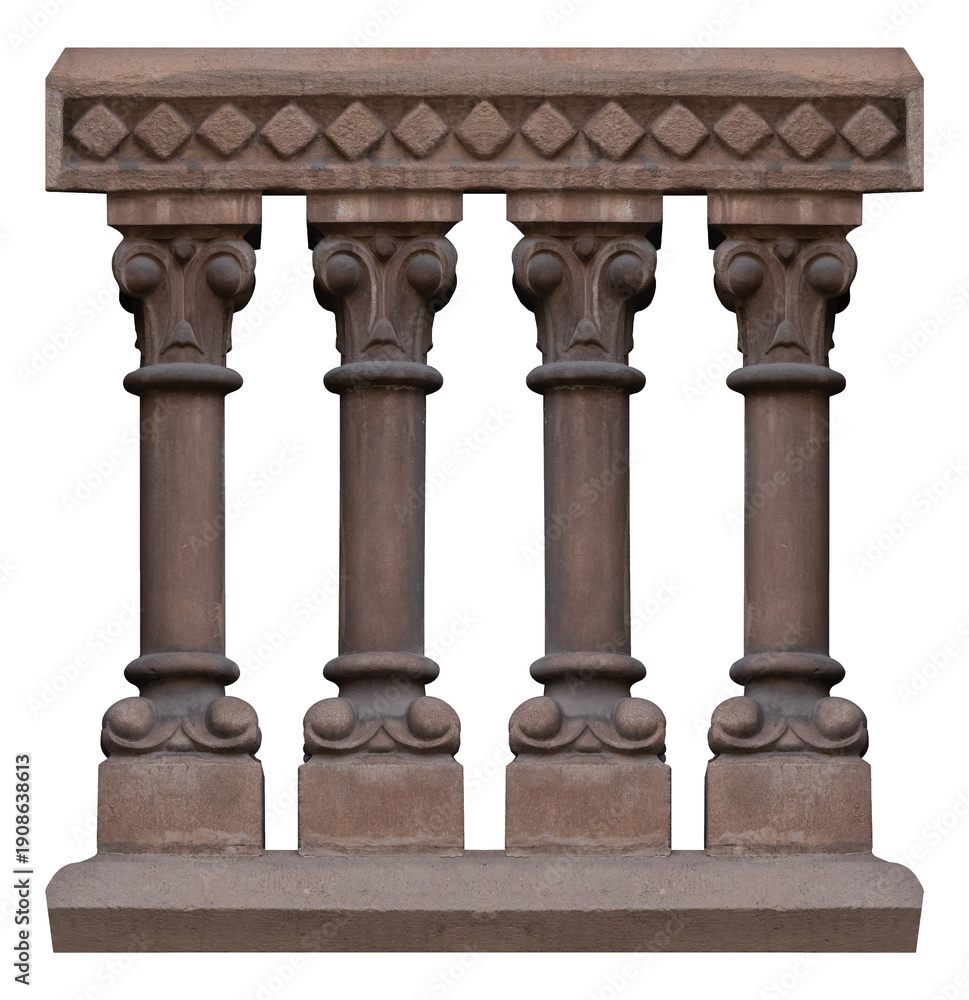 Elements of architectural decorations of buildings, columns and tops, gypsum stucco molding, wall texture and patterns. On the streets in Barcelona, public places. #1908638613