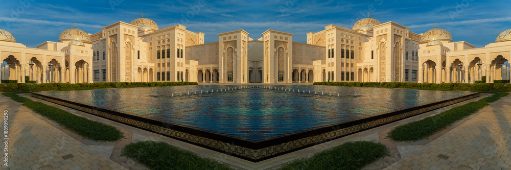 Elements of architecture of buildings, ancient arches, columns, windows and apertures. On the streets in Emirates, public places. #1889090298