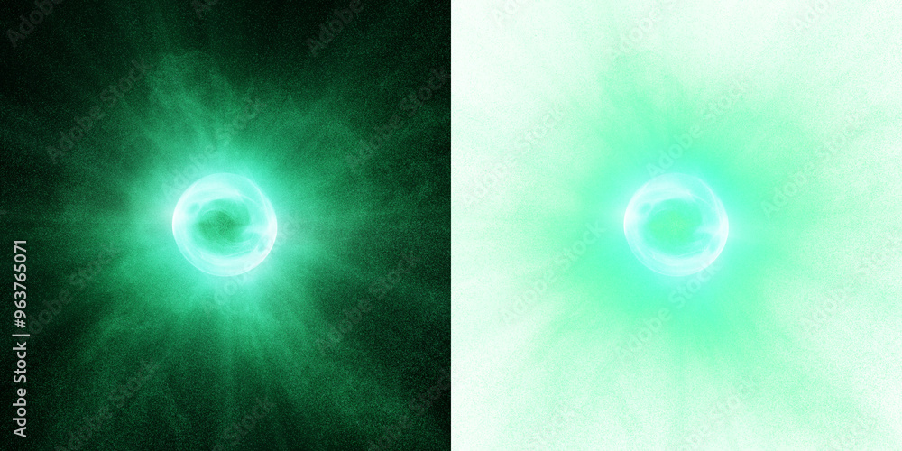 Emerald orb with swirling magic particles, 3D render. VFX overlays. Alpha transparent for creative use. #963765071