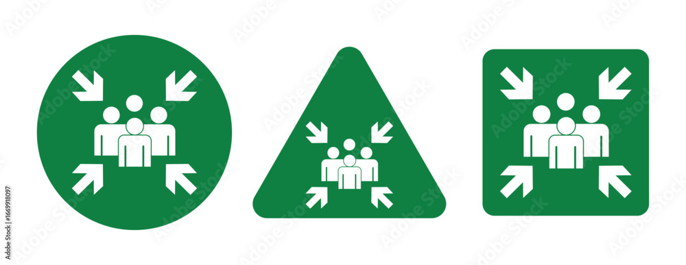 Emergency assembly point sign. Assembly point sign symbol vector illustration isolated on white background. Emergency assembly point sign, logo, badge, icon, sticker, label, emblem, stamp, symbol. #1669918097