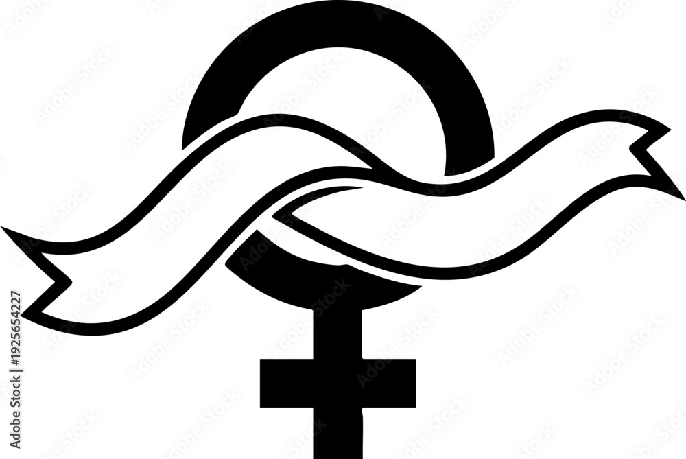 Empowering female symbol with flowing ribbon banner #1925654227