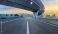 Empty asphalt highway leading to karst mountain peaks at sunset in Guilin, Guangxi, China. #1942334414