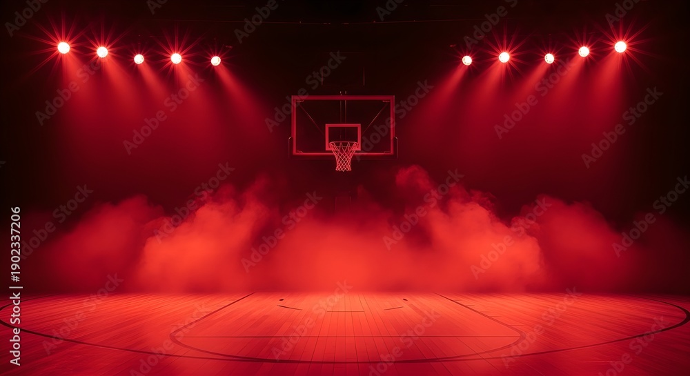 Empty Basketball Court with Red Spotlights and Fog. #1902337206