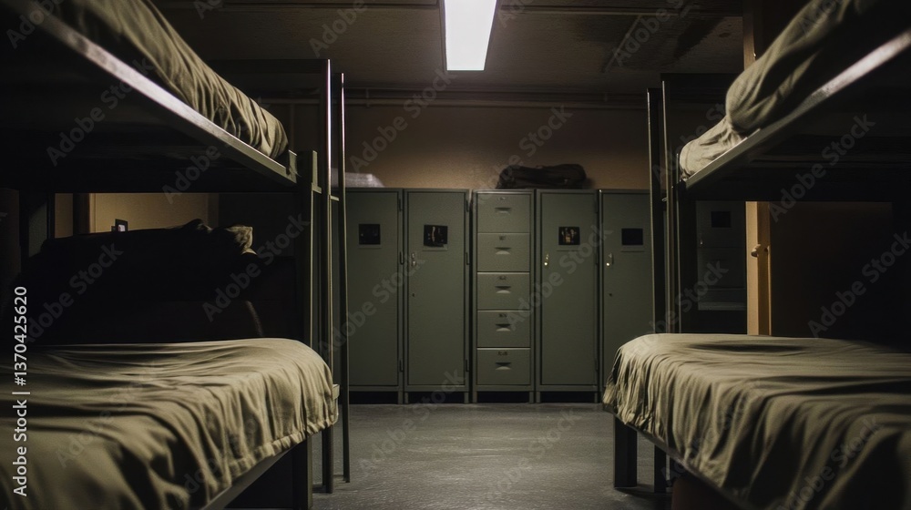 Empty military barracks room. #1370425620