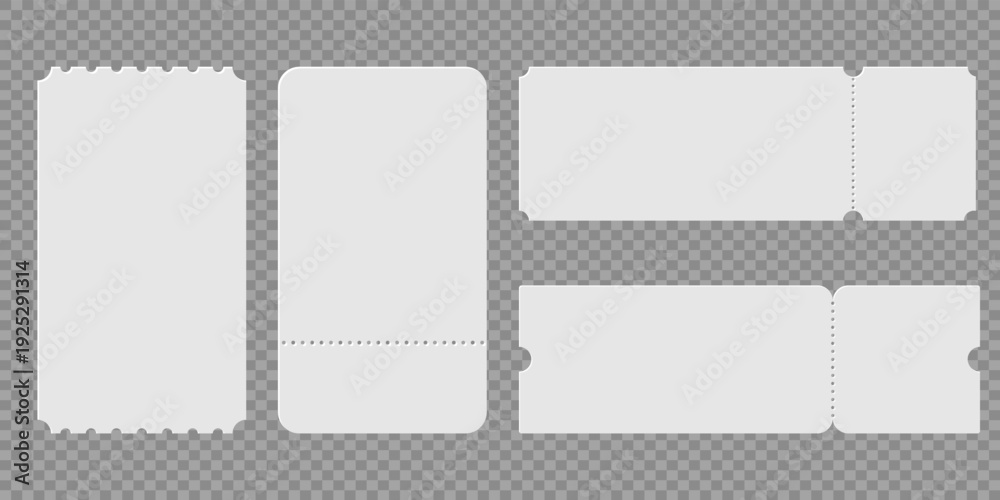 Empty ticket templates collection with perforated borders for concert, cinema or festival passes and lottery cards, ready to use vector shapes #1925291314