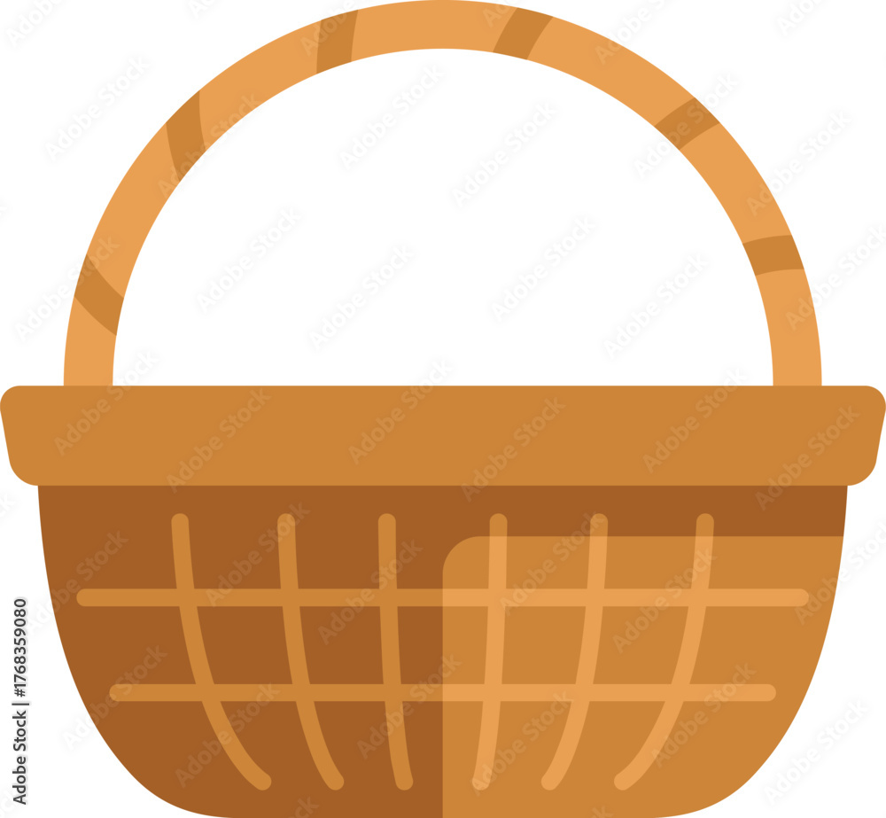 Empty wicker basket with handle standing up, traditional container for food or other goods, isolated on white background #1768359080