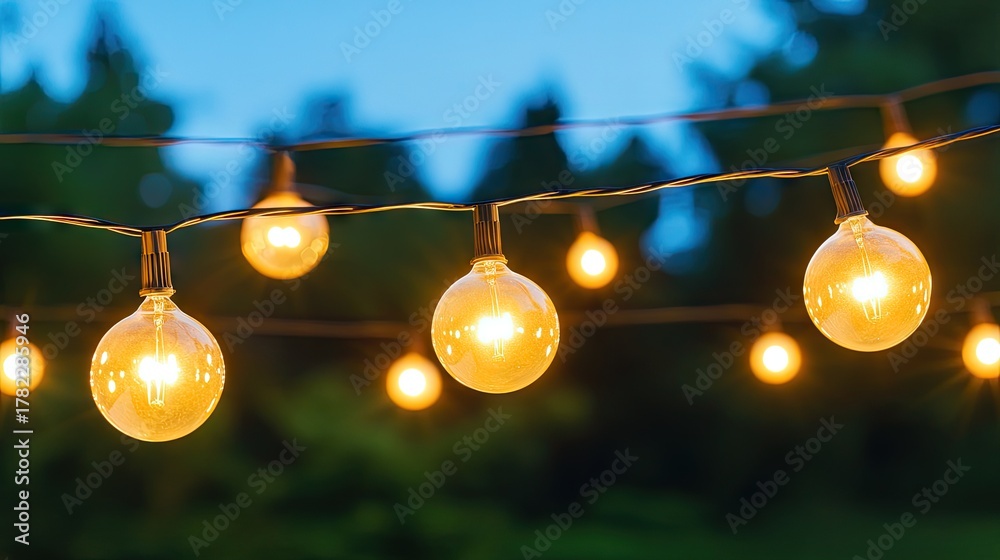 Enchanting string lights create a magical atmosphere for outdoor weddings and evening celebrations under the night sky #1782285946