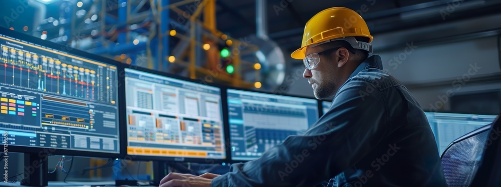 Engineer Reviewing Data and System Performance in Control Room #871205558