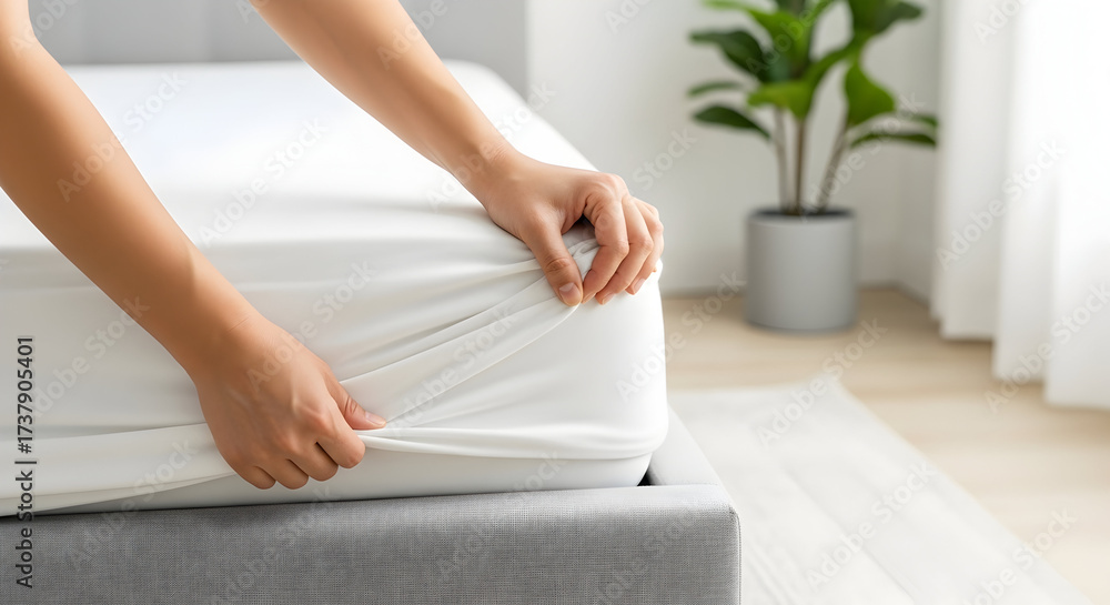 Enhance Sleep Quality With Fresh Clean Sheets Bedding and Mattress Cover for a Comfortable Night's Rest Promote Relaxation and Wellbeing In a Clean Home Interior #1737905401