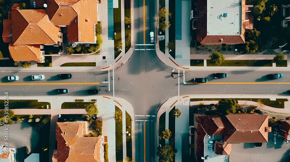 Enhancing smart city connectivity through efficient intersection design urban neighborhood aerial view modern infrastructure #1531852244