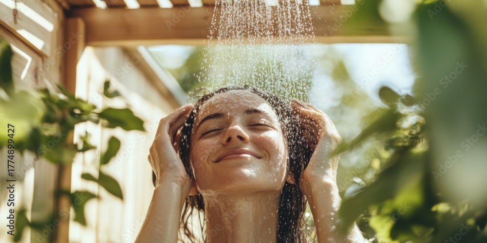 Enjoying a Refreshing Outdoor Shower Experience Surrounded by the Beauty of Nature #1774899427