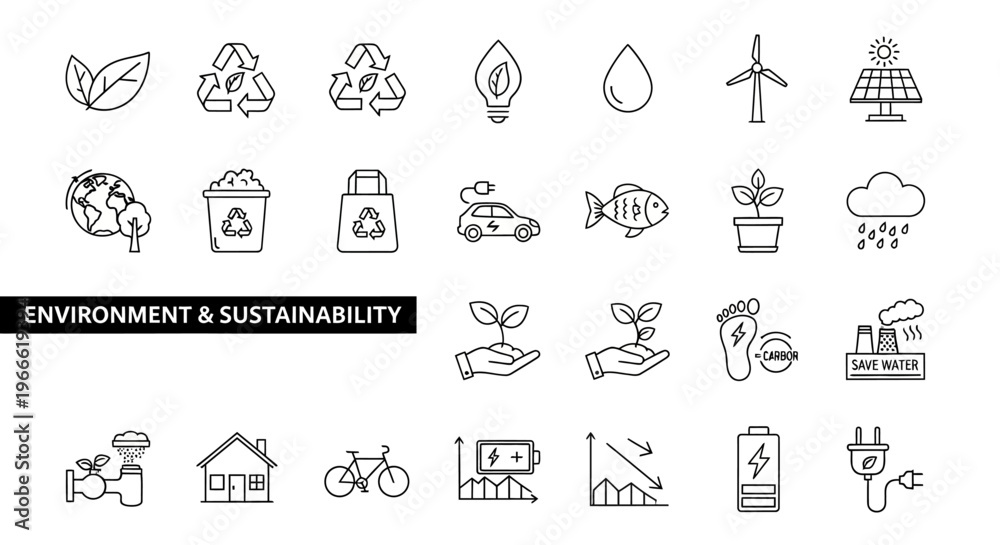 Environment and Sustainability Icons Renewable Energy, Recycling, and Nature #1966619394